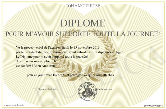 Envoyez par email votre Diplôme pour m'avoir supporté toute la journée! personalisé