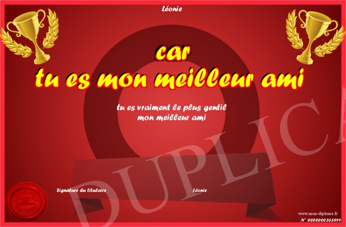 Envoyez par email votre car tu es mon meilleur ami personalisé