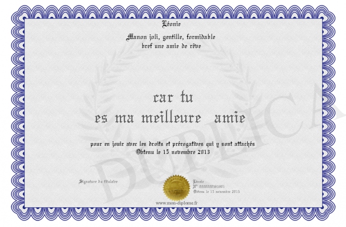 Envoyez par email votre car tu es ma meilleure amie personalisé