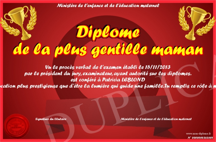 • Diplôme de la plus gentille maman