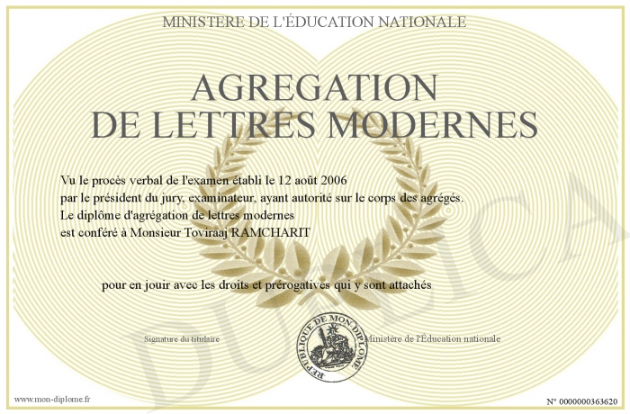 Envoyez par email votre Agrégation de lettres modernes personalisé