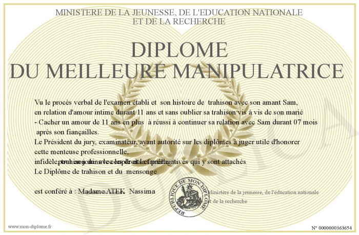 Envoyez par email votre Diplôme du meilleure manipulatrice personalisé