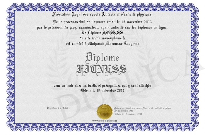 Envoyez par email votre Diplôme FITNESS personalisé