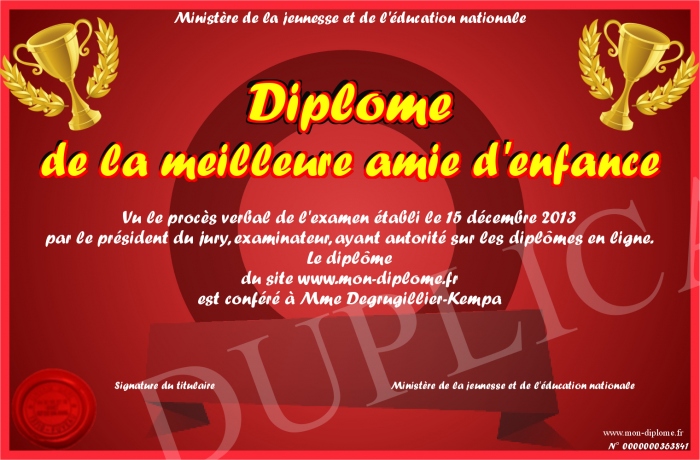 Envoyez par email votre Diplôme de la meilleure amie d'enfance personalisé