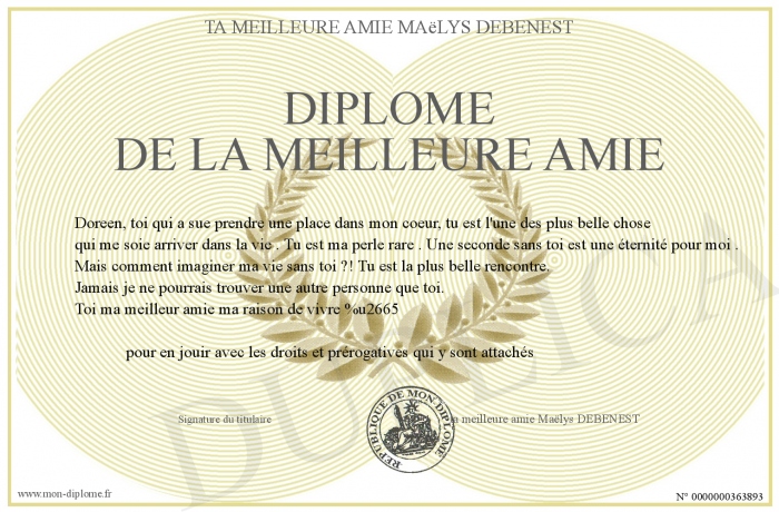 Envoyez par email votre Diplôme de la meilleure amie personalisé