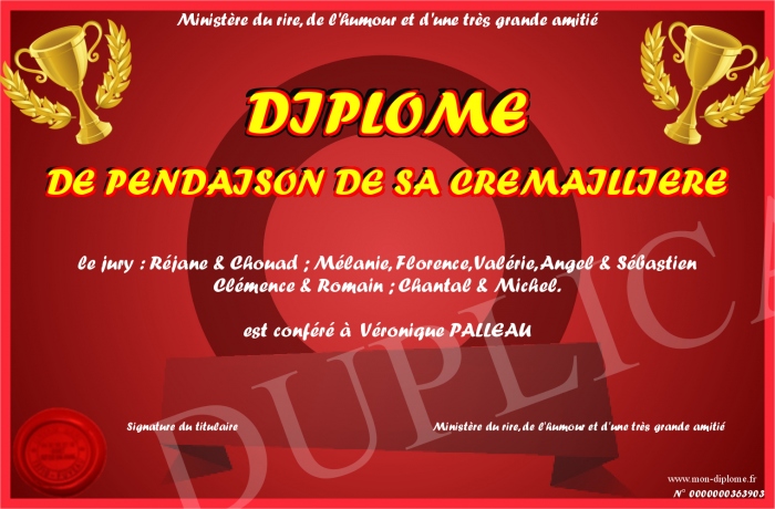 Envoyez par email votre DIPLOME DE PENDAISON DE SA CREMAILLIERE personalisé