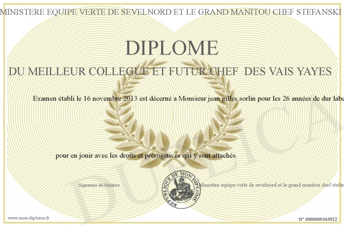 Envoyez par email votre Diplôme du meilleur collégue et futur chef des vais yayés personalisé