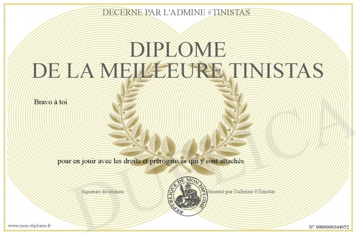 Envoyez par email votre Diplôme de la meilleure Tinistas personalisé