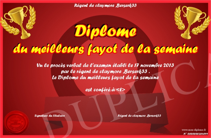 Envoyez par email votre Diplôme du meilleurs fayot de la semaine personalisé