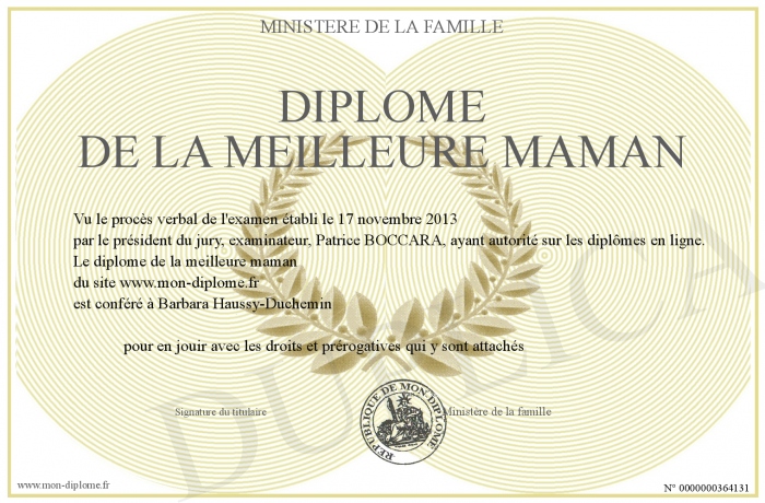Envoyez par email votre diplôme de la meilleure maman personalisé