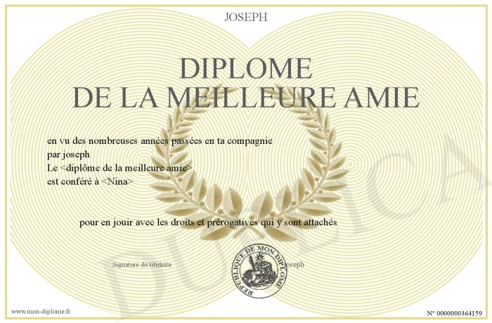 Envoyez par email votre Diplôme de la meilleure amie personalisé