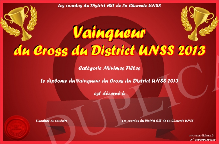 Envoyez par email votre Vainqueur du Cross du District UNSS 2013 personalisé