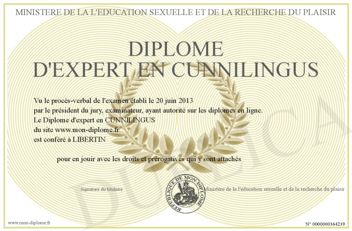Envoyez par email votre Diplôme d'expert en CUNNILINGUS personalisé
