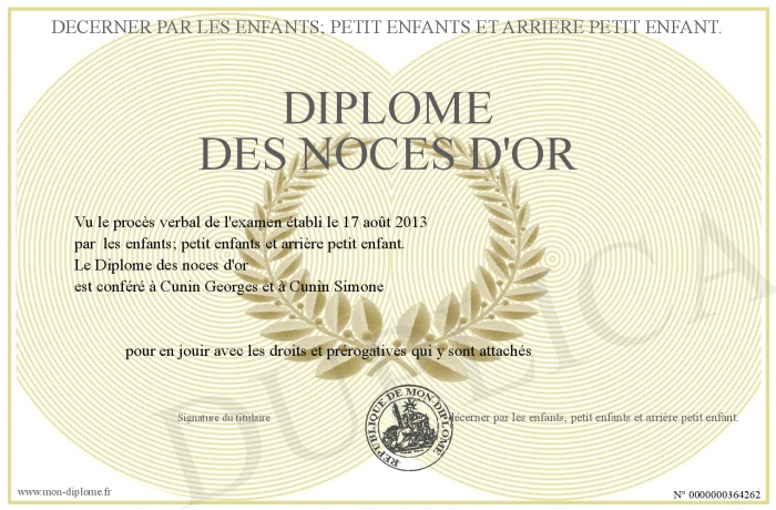 Envoyez par email votre Diplôme des nôces d'or personalisé