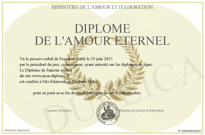 Envoyez par email votre Diplôme de l'amour eternel personalisé