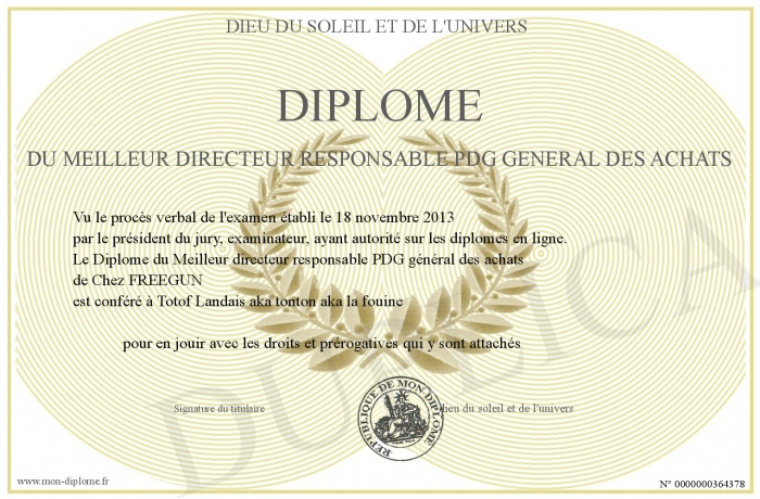 Envoyez par email votre Diplôme du Meilleur directeur responsable PDG général des achats personalisé