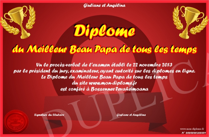 Envoyez par email votre Diplôme du Meilleur Beau Papa de tous les temps personalisé