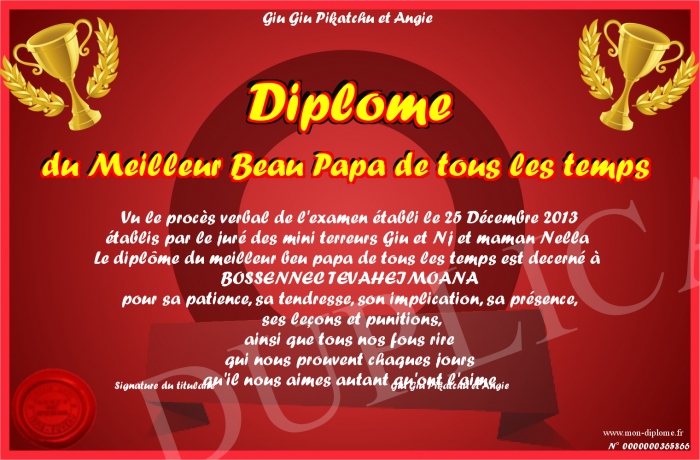 Envoyez par email votre Diplôme du Meilleur Beau Papa de tous les temps personalisé