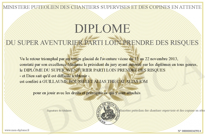 Envoyez par email votre Diplôme du super aventurier parti loin prendre des risques personalisé