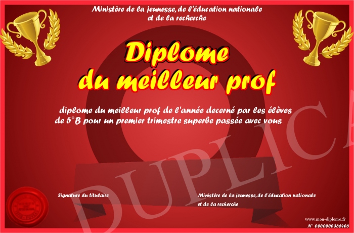 Envoyez par email votre Diplôme du meilleur prof personalisé