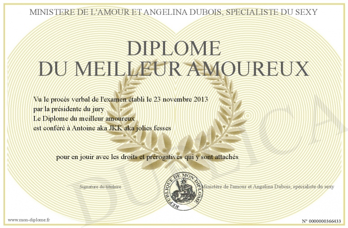 Envoyez par email votre Diplôme du meilleur amoureux personalisé