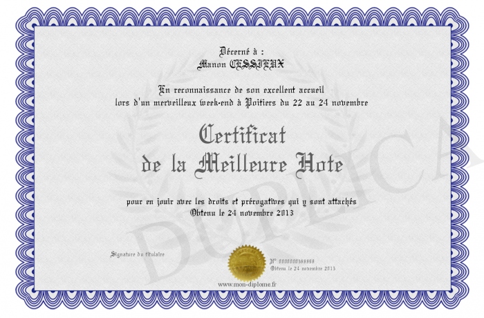 Envoyez par email votre Certificat de la Meilleure Hôte personalisé