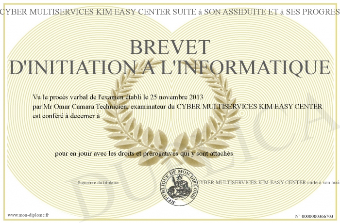 envoyé par le CYBER MULTISERVICES KIM EASY CENTER suite à son assiduité et à ses progrés !