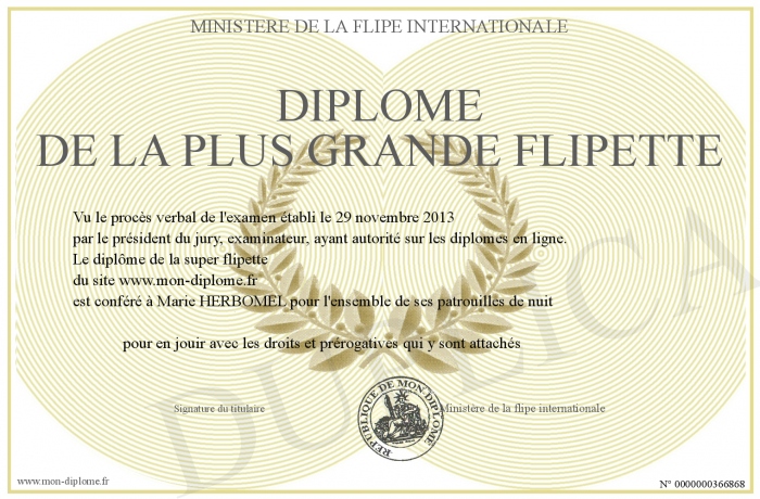 Envoyez par email votre diplôme de la plus grande flipette personalisé