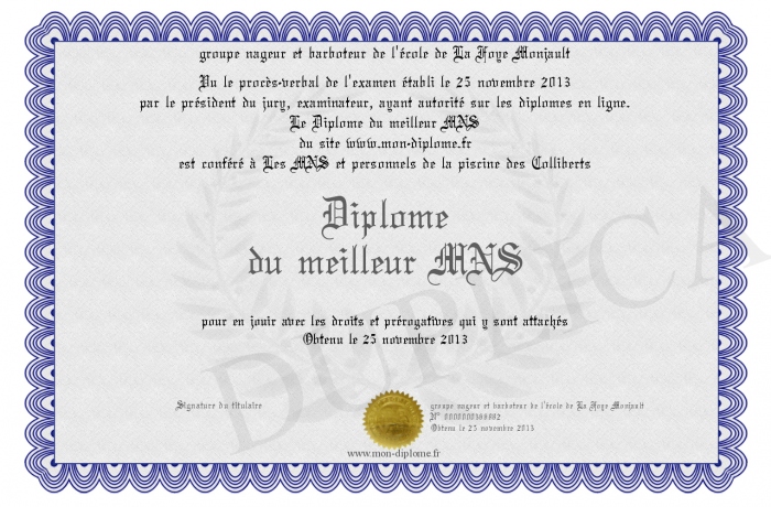 Envoyez par email votre Diplôme du meilleur MNS personalisé