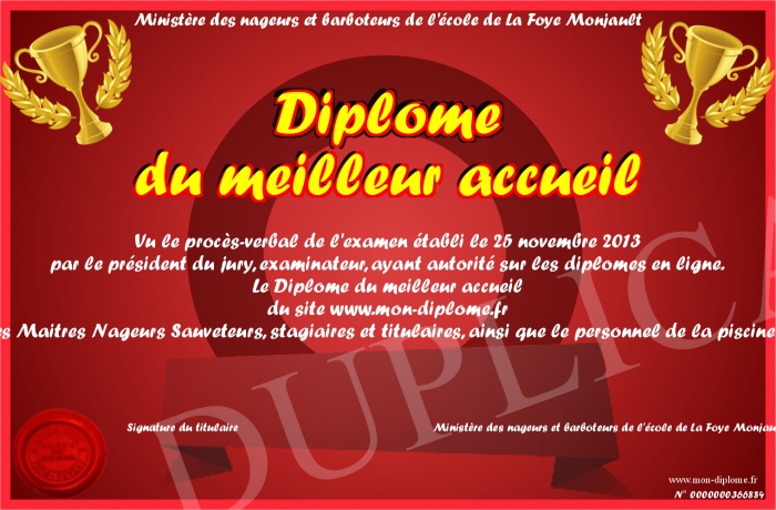 Envoyez par email votre Diplôme du meilleur accueil personalisé