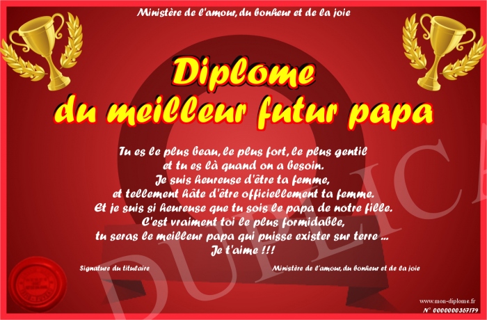 Envoyez par email votre Diplome du meilleur futur papa personalisé