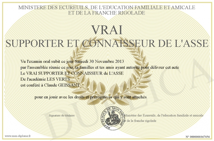 Envoyez par email votre VRAI SUPPORTER ET CONNAISSEUR de L'ASSE personalisé