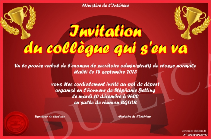Envoyez par email votre Invitation du collègue qui s'en va personalisé
