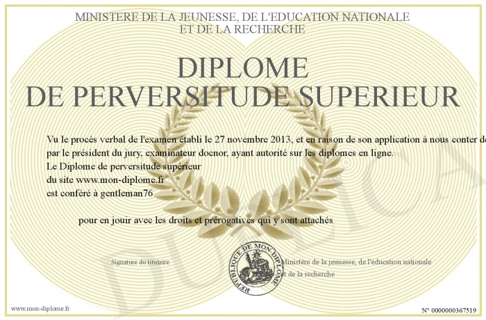 Envoyez par email votre Diplôme de perversitude supérieur personalisé