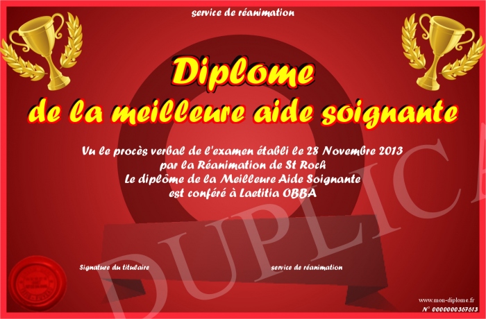 Envoyez par email votre Diplôme de la meilleure aide soignante personalisé