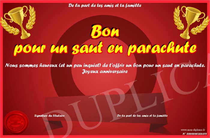 Envoyez par email votre Bon pour un saut en parachute personalisé