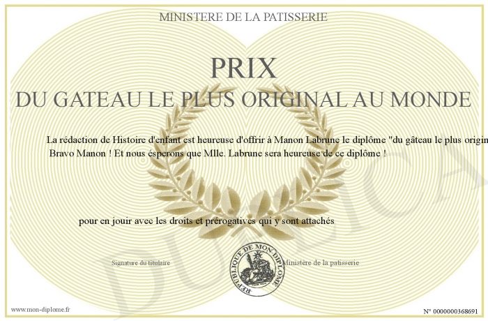 Envoyez par email votre Prix du gateau le plus original au monde personalisé