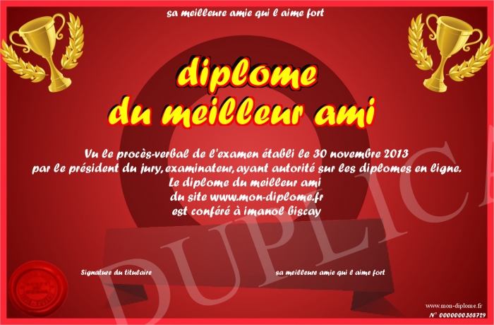 Envoyez par email votre diplome du meilleur ami personalisé