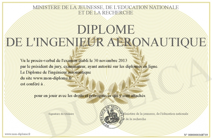 Envoyez par email votre Diplôme de l'ingénieur aéronautique personalisé