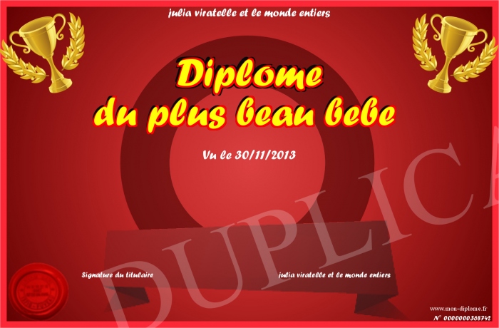 Envoyez par email votre Diplôme du plus beau bebe personalisé