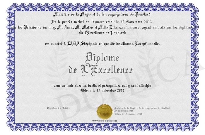 Envoyez par email votre Diplôme de L'Excellence personalisé