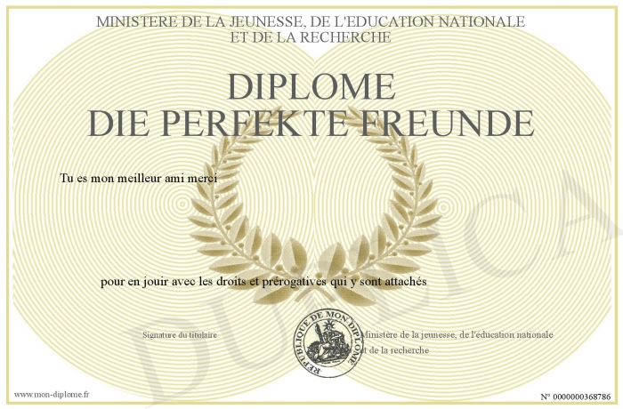 Envoyez par email votre Diplôme die perfekte freunde personalisé