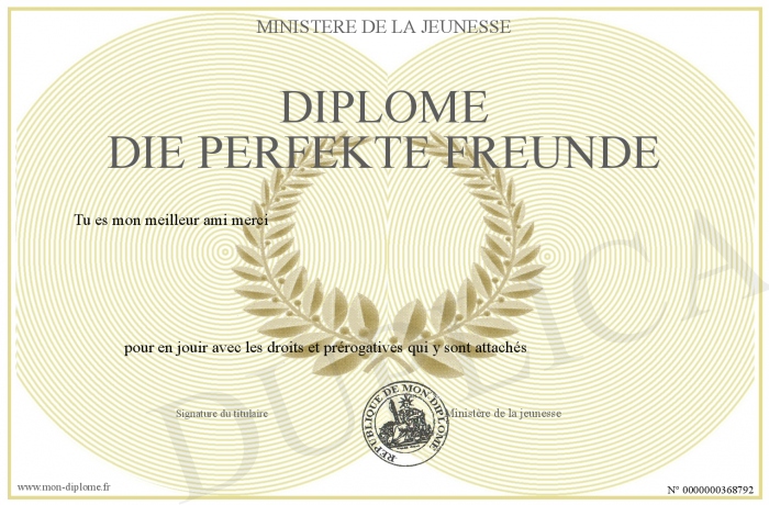 Envoyez par email votre Diplôme die perfekte freunde personalisé