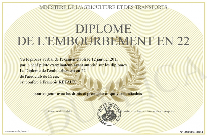Envoyez par email votre Diplôme de l'embourbement en 22 personalisé
