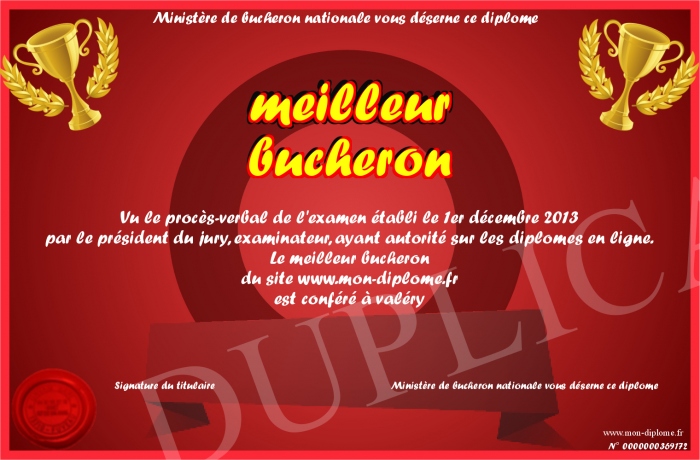 envoyé par le Ministère de bucheron nationale vous déserne ce diplome !