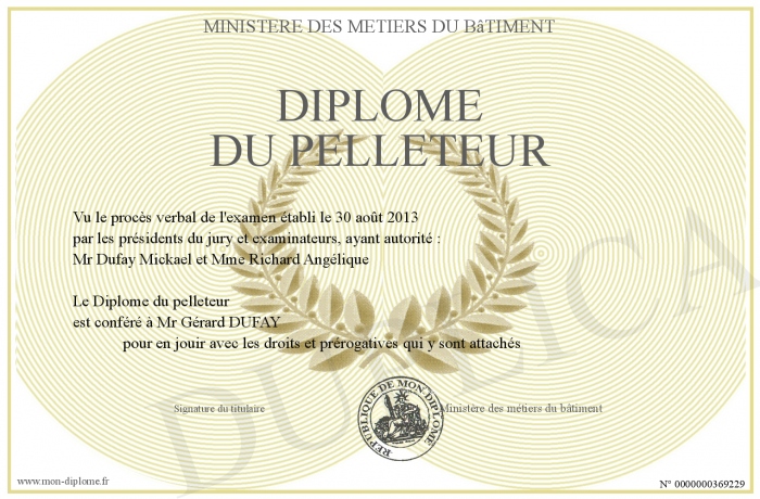 Envoyez par email votre Diplôme du pelleteur personalisé