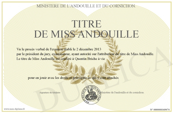 Envoyez par email votre titre de Miss Andouille personalisé