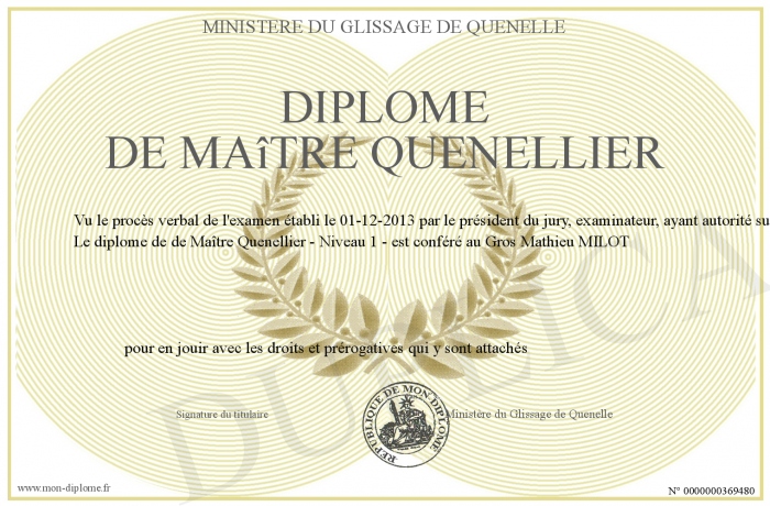 Envoyez par email votre Diplôme de Maître Quenellier personalisé