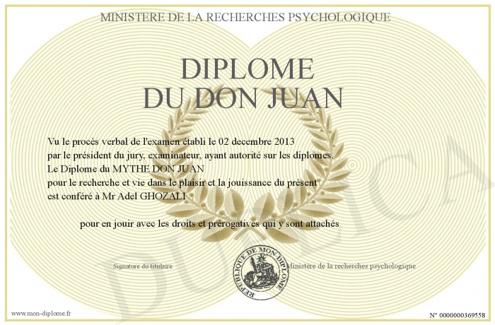 Envoyez par email votre Diplôme du DON JUAN personalisé