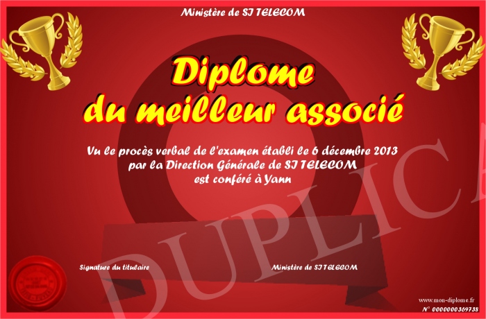 Envoyez par email votre Diplôme du meilleur associé personalisé
